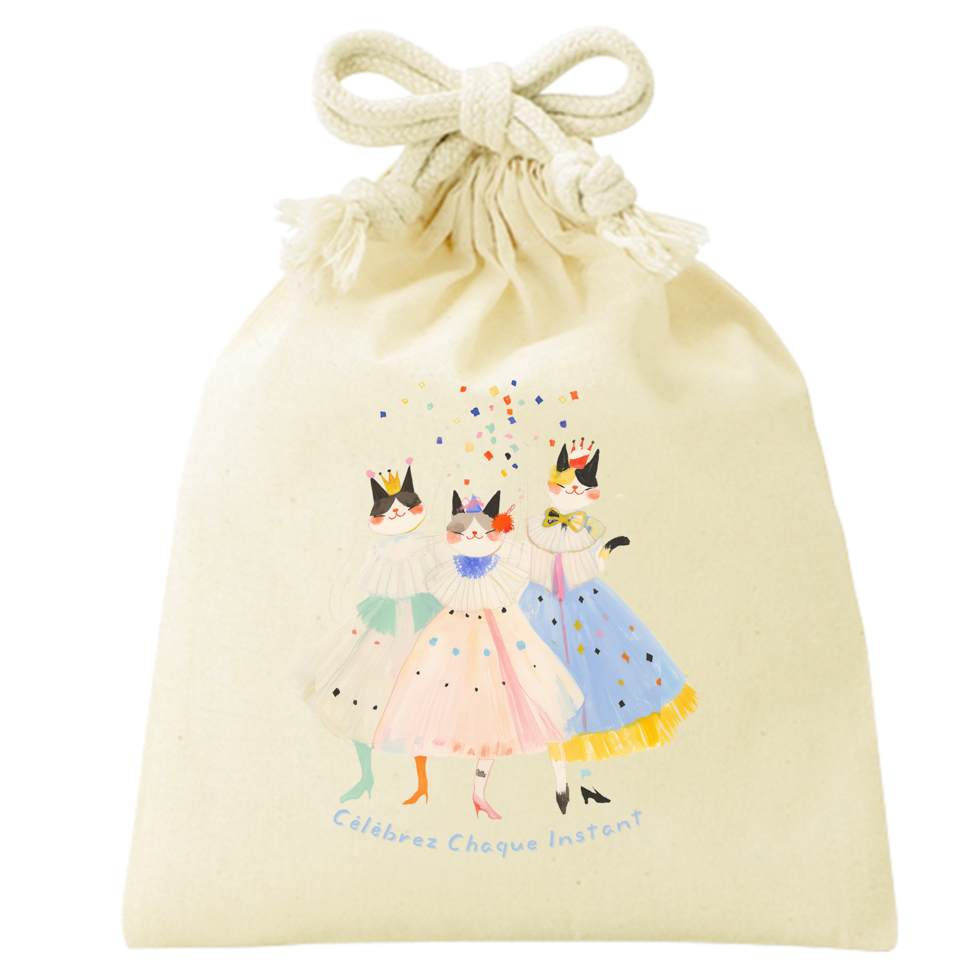 柔らかいパステルカラーと『Célébrez Chaque Instant』(すべての瞬間を祝おう)のフランス語メッセージが、持つ人に幸せを運んでくれます。猫好きやアートを愛する方へのプレゼントにもおすすめ!